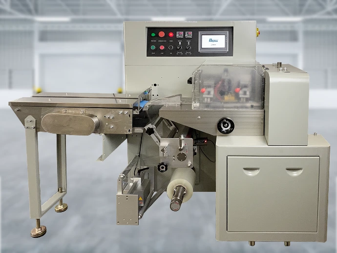 Compact inverted horizontal flow wrapper engineered for reliable packaging of small to medium-sized products, including bakery items, snack bars, confectionery, and medical products, with consistent performance and clean package presentation.